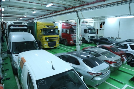 The unique ship with 30 permanent crew members is 154.50 meters long, 17.7 meters wide, and 7.5 meters high. At the moment, for its carrying capacity, the vessel is larger than other ferries in the Caspian Sea. The ferry can carry 100 passengers, 56 tanks, or 50 trucks/TIRs.