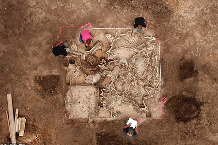 Archaeologists have found a bronze cauldron in the center of the tomb, which is believed to contain a nobleman's ashes. "We have to find his remains," said Suzanne Friedrich, an archaeologist at the Museum of Primitive Community History.