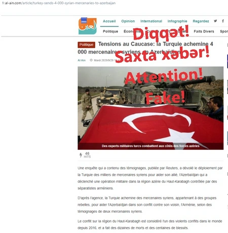 Following the Azerbaijani Army's counter-offensive operations, occupying Armenia spreads false news in the information space.