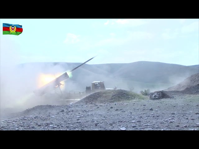 Units of the Azerbaijani Army are delivering artillery strikes on enemy positions.