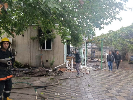 One of the missiles hit the house of Ilgar Farzaliyev, a resident of the city. As a result, a fire broke out in the house. Employees of the Ministry of Emergency Situations extinguished the fire.