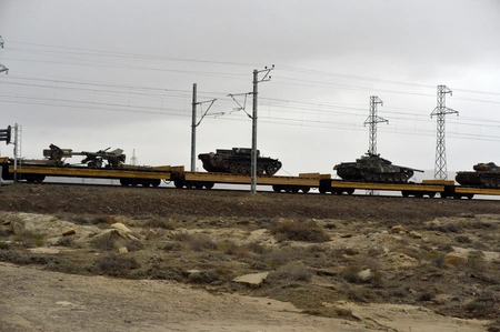 The equipment taken by the Azerbaijani Army during the Second Karabakh War as a military trophy from the enemy is brought to Baku by rail.