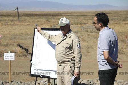 Regional operational manager of the Azerbaijan National Agency for Mine Action (ANAMA) Ehtiram Jafarov told the guests about how the area is being cleared and the mines and ammunition found are being neutralized.