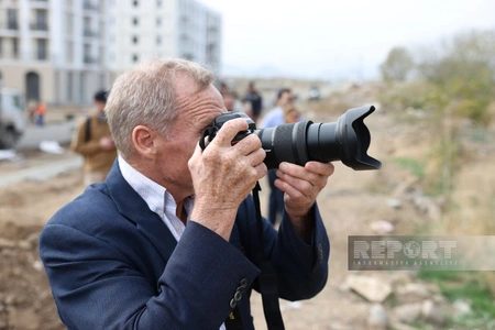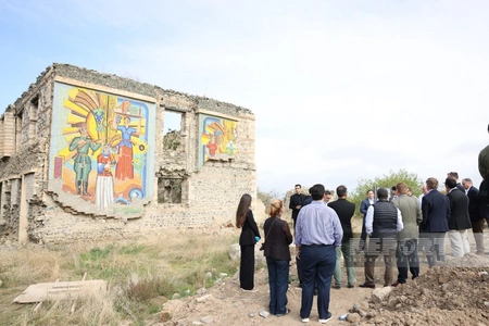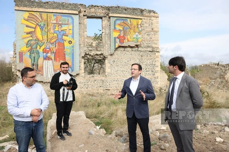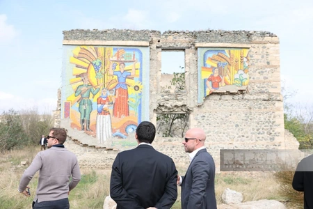 According to a Report correspondent, the guests were able to witness firsthand the Armenian vandalism and the ongoing restoration work in the city.