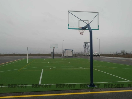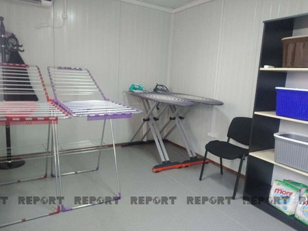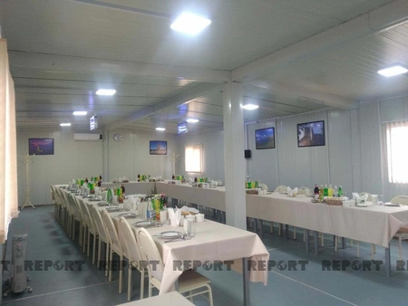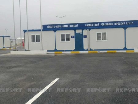 The total area of the Turkish-Russian Joint Monitoring Center is about 4 hectares. There are 65 modular service and executive rooms in the area. All premises are equipped with the necessary facilities - water, electricity, and heating. Besides, there is a standard monitoring center, briefing room, canteen for 100 people, a medical center, a laundry, a hairdresser, a tailor, and a shop. There is a water station, a transformer, a generator, a parking lot, two outdoor sports camps, two indoor gyms, food, and cold storage. The whole place was fenced along the perimeter, four observation-control towers were installed, and daily observation was organized. Restrooms equipped with the necessary things have also been prepared for the organization of recreation for the staff.
