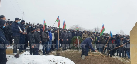 The relatives of him, the chief of the Executive Power of Guba region Ziyaddin Aliyev, the heads of the law-enforcement bodies of the region, the villagers, and the representatives of the regional public took part in the funeral ceremony.