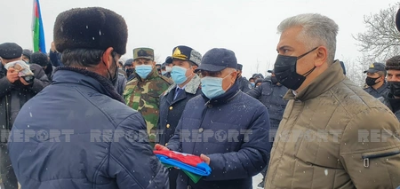 Ziyaddin Aliyev presented the tricolor flag wrapped in the coffin of the martyr to his relatives.