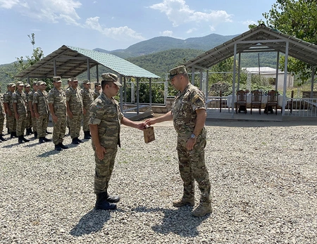 The Army Corps Commander, Major General Mais Barkhudarov conveyed the Defense Minister’s congratulations on the occasion of the commissioning of the new military unit to the military personnel and wished them success.