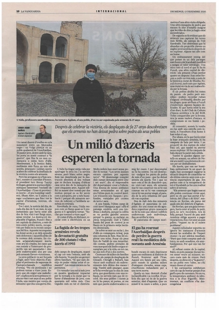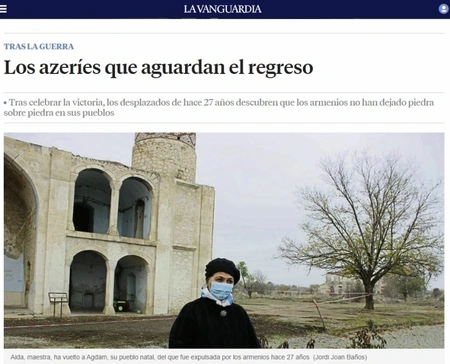 The Spanish newspaper La Vanguardia published an article by Jordi Juan Baños, the newspaper's correspondent in Agdam, entitled "One million Azeris are waiting for their return."