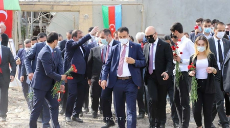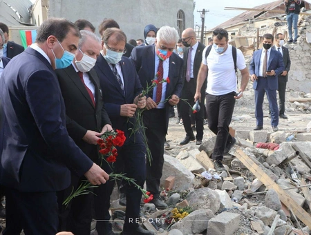 According to the Western Center of Report, Turkish MPs and other officials, who arrived in Ganja with Şentop, visited the areas destroyed by Armenia's rocket attack on Ganja and prayed for the souls of those who died there.
