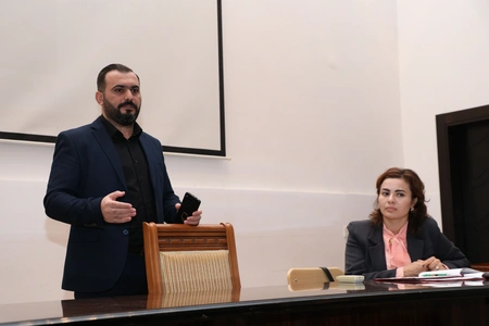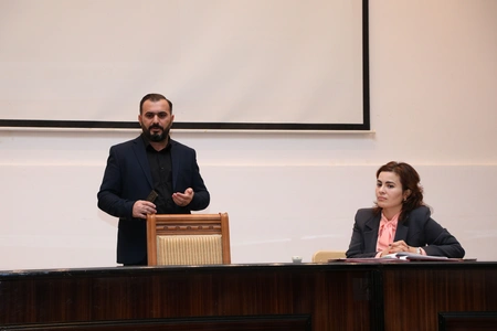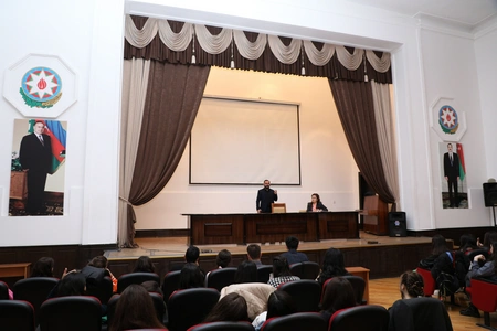 At the meeting initiated by Ph.D. instructor Aynura Huseynova, a teacher at the Department of Azerbaijan Literature, Nasibli gave information about the activities of the Agency.