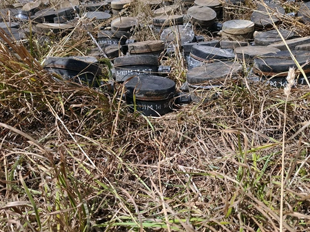 Azerbaijani engineer-sappers detected 452 Armenian-made E-001 M anti-personnel mines, buried by Armenian sabotage groups in this territory, and neutralized them in compliance with safety regulations.