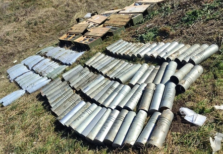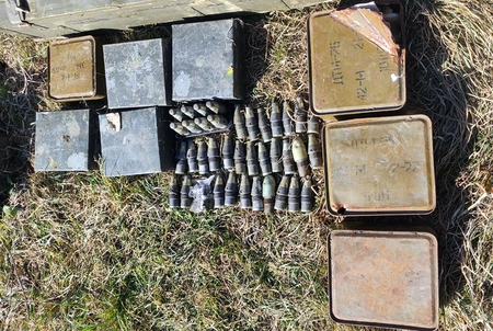 8 pieces of 122 mm armor-piercing, 273 pieces of shrapnel, and 285 pieces of 122 mm artillery fuzes detected by the engineer-sapper units of the Azerbaijani Army were seized from the area in compliance with security rules.