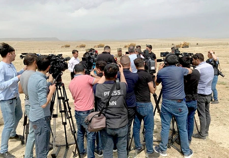 On May 25, a media tour was organized for media representatives to familiarize with the new engineering machinery and equipment used to accelerate the work on clearance of the liberated territories of mines and strengthen security measures.