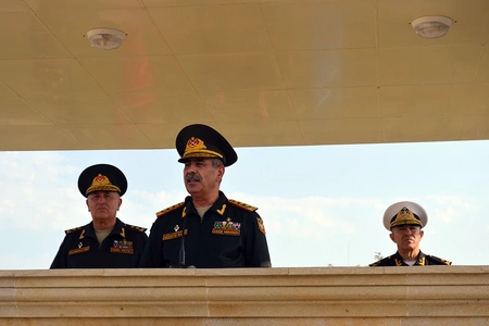 Azerbaijani Defense Minister, Colonel General Zakir Hasanov and the leadership of the ministry have attended the graduation ceremony of the Marines Commando Basic Courses, Report informs referring to the press service of the Defense Ministry.