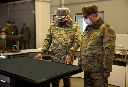 Azerbaijani defense minister, Colonel General Zakir Hasanov, and the leadership of the ministry have visited the Combined Command Post of the Air Force to check the organization of interoperability between the anti-aircraft missile forces and the military aviation of the Air Force in the course of the Operational-Tactical Exercises of the Azerbaijani army, Report informs referring to the Defense Ministry.