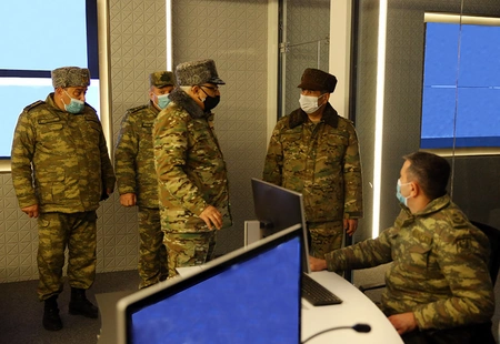 Air Force Commander Lieutenant General Ramiz Tairov reported to the minister of defense on the activities of the Combined Command Post, equipped with modern automated control systems.
