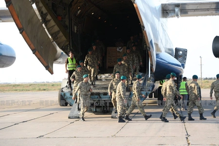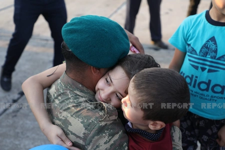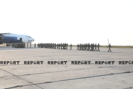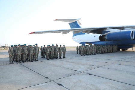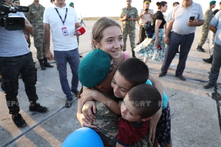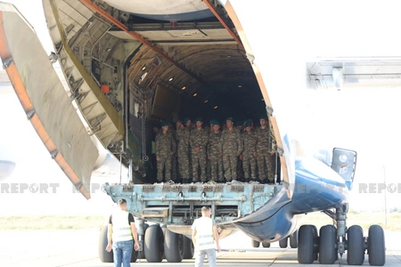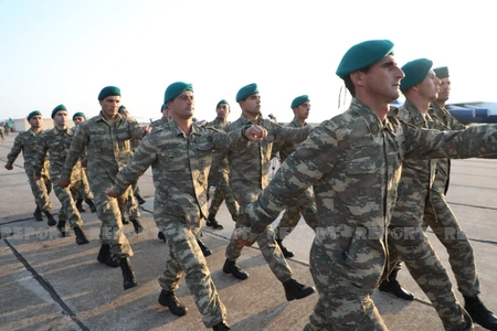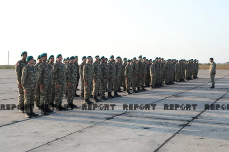 Report informs that the welcoming ceremony was held for the 120-strong contingent of Azerbaijani peacekeepers who returned to Baku after completing their service duties at the Kabul International Airport.