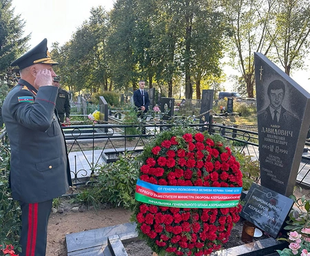 A delegation led by the First Deputy Minister of Defense – Chief of the General Staff of the Azerbaijan Army, Colonel General Karim Valiyev visited the grave of the National Hero of Azerbaijan, Major Davidovich Anatoliy Nikolayevich, in the city of Slutsk and paid tribute to his memory.