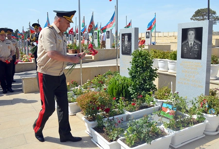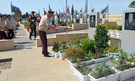 On July 12, the First Deputy Minister of Defense - Chief of the General Staff of the Azerbaijan Army, Colonel General Karim Valiyev, and the leadership of the Ministry visited the Second Alley of Shehids (Martyrs) on the occasion of the Tovuz battles’ anniversary, Report informs, citing Defense Ministry.