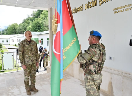 On June 26 - the Armed Forces Day, President of the Republic of Azerbaijan, Victorious Commander-in-Chief of the Armed Forces Ilham Aliyev attended a solemn ceremony to hand over the battle flag to the commando military unit as part of his visit to Kalbajar district, Report informs, citing AZERTAC.