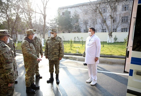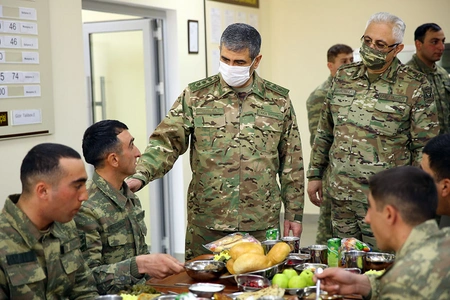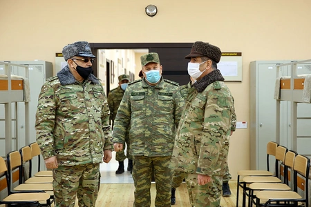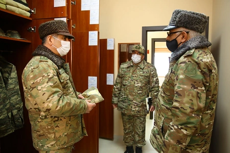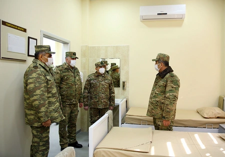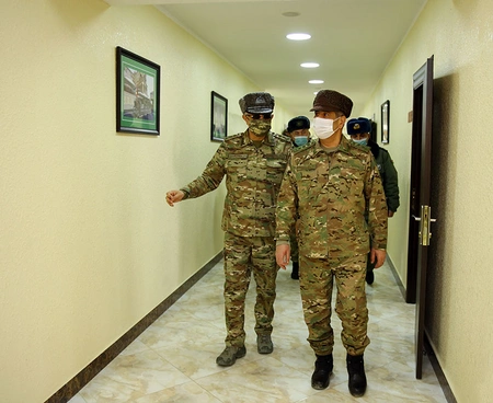 The Minister of Defense got acquainted with the conditions created for the military personnel, examined the headquarters buildings, soldiers' barracks, medical points, canteens, classrooms, food and clothing warehouses, bath and laundry facilities and boiler complexes, parade grounds, checkpoints, as well as other service and administrative facilities located on the territory of military units.