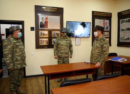 Then Colonel-General Z. Hasanov also inspected the Flight Control Point and the unmanned aerial vehicles (UAV) Ground Control Station in the territory of the reconstructed military unit. The Minister of Defense was informed that a control point and a ground station provided with modern equipment would ensure continuous and high-quality coordination of military aviation and UAV flights.