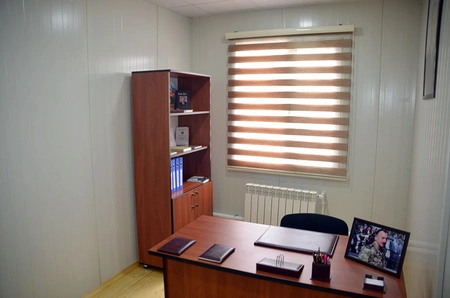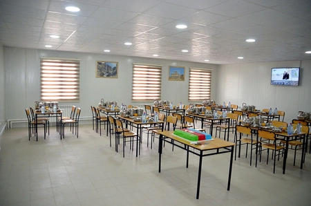 Report informs, citing the Ministry of Defense, that another modular military unit supplied with modern equipment was commissioned in the territory of the Aghdam region to organize combat duty and troops' service at a high level, as well as to provide living conditions of military personnel. The military unit's office premises are equipped with air conditioners, furniture, modern sanitary facilities, bedding, kitchen equipment, and generators.