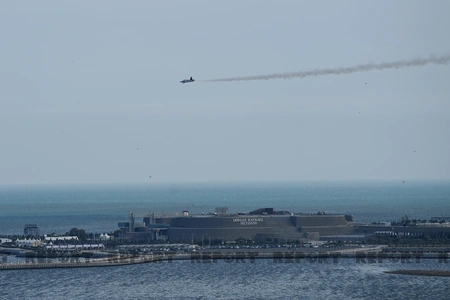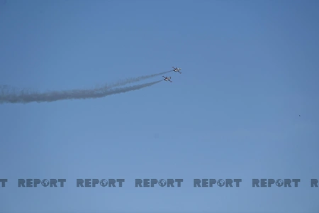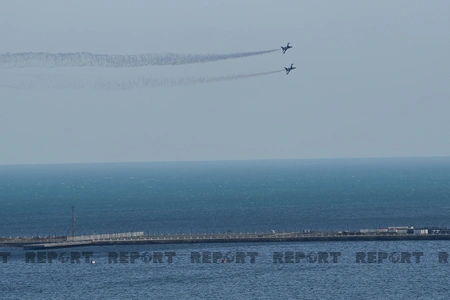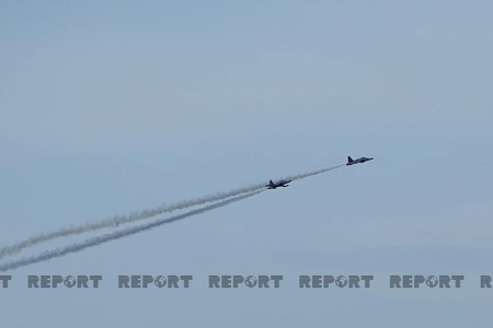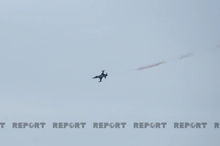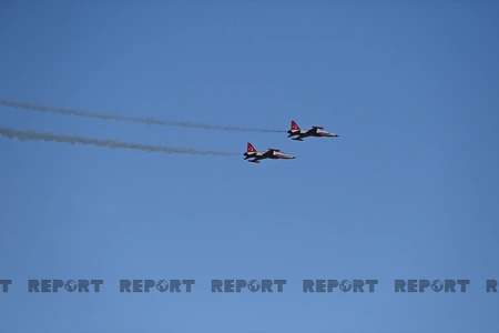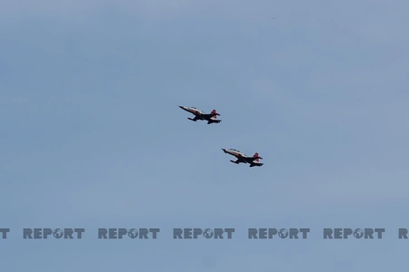 Report informs that the fighters belonging to the Solo Turk and Turkish Stars air groups conducted regular training flights in the sky over Baku.