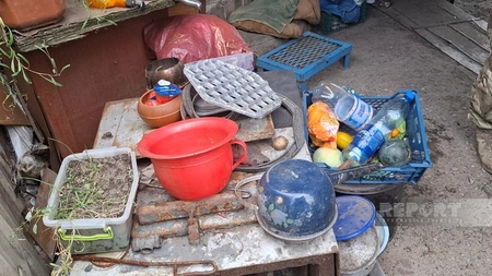 Neither side's military is able to enter the villages. According to accompanying Ukrainian soldiers, only one elderly woman remains, who wrote the word "bread" in large letters on the ground in her yard in Ukrainian, asking for help from drones flying overhead.