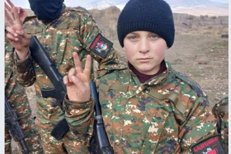 "The sign on the tag of this Armenian kid means 'revenge'. Armenian political system built on expansionism and war with neighbors exploits kids in reviving militarism in Armenia. Shame," she tweeted.