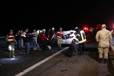 The incident took place on the 21st km of the Sanliurfa-Gaziantep highway. According to information, the cause of the incident was a collision between a car with four passengers and a tractor-trailer. The driver of the car also died in the accident.