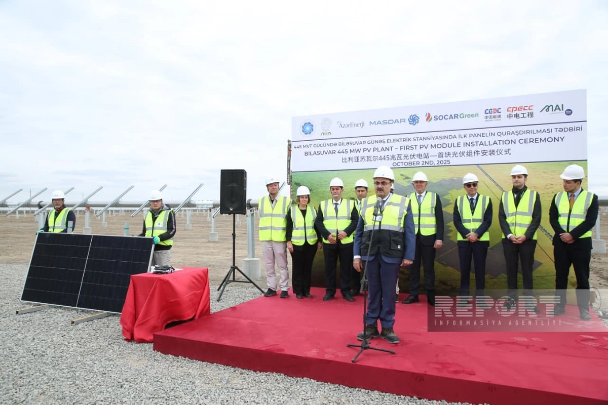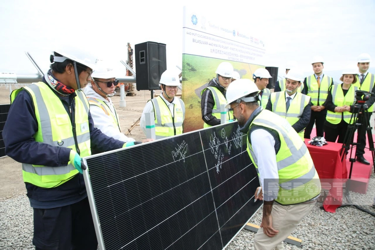 Biləsuvar rayonunda inşa edilən 445 MVt gücündə günəş elektrik stansiyasında (GES) birinci panelin quraşdırılması mərasimi keçirilir.