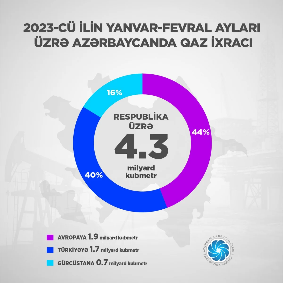 Bu ilin yanvar-fevral aylarında Azərbaycan qaz ixracını 2022-ci ilin eyni dövrü ilə müqayisədə 13 % artırıb.