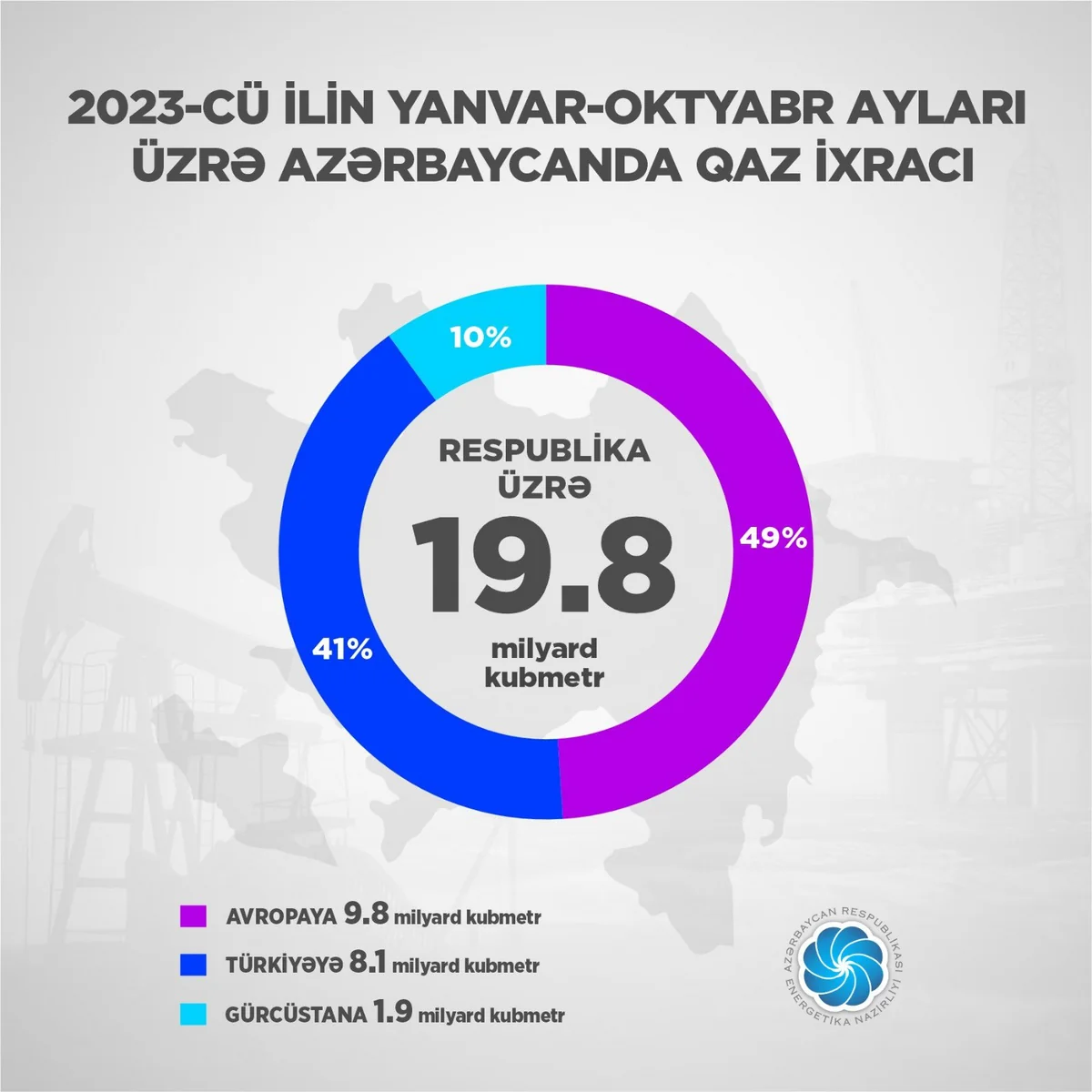 Məlumata görə, bunun da 9,8 milyard kubmetri Avropaya, 8,1 milyard kubmetri Türkiyəyə, 1,9 milyard kubmetri isə Gürcüstana ixrac olunub.