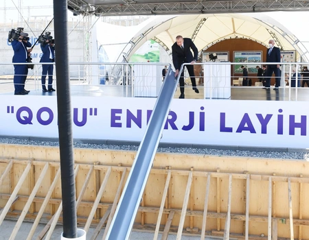 "Report" xəbər verir ki, dövlət başçısı həmçinin 385 meqavatlıq “Qobu” Elektrik Stansiyasının təməlini qoyub.