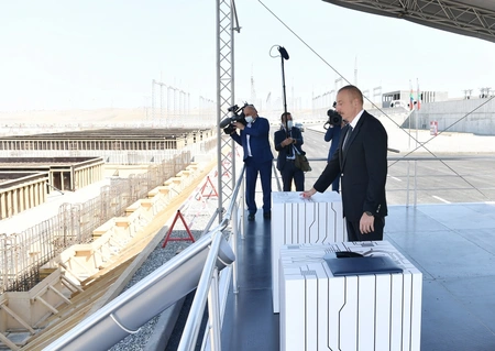 AZƏRTAC xəbər verir ki, dövlət başçısı həmçinin 385 meqavatlıq “Qobu” Elektrik Stansiyasının təməlini qoyub.