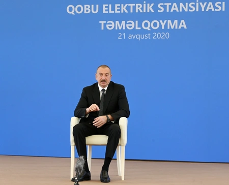- Bu gün ölkəmizin elektroenergetika sahəsində növbəti önəmli addım atılır. “Qobu” Elektrik Stansiyasının təməl daşını qoyduq. Əminəm ki, bu stansiyanın tikintisi uğurla gedəcək və nəzərdə tutulmuş vaxtda – 2022-ci ilin əvvəlində tam istifadəyə veriləcəkdir. Bu, bizim enerji potensialımızın gücləndirilməsi istiqamətində çox önəmli addımdır. Stansiyanın generasiya gücü 385 meqavatdır. Bu, ölkəmizdə tikilən böyük stansiyalar arasında öz yerini tapacaq.