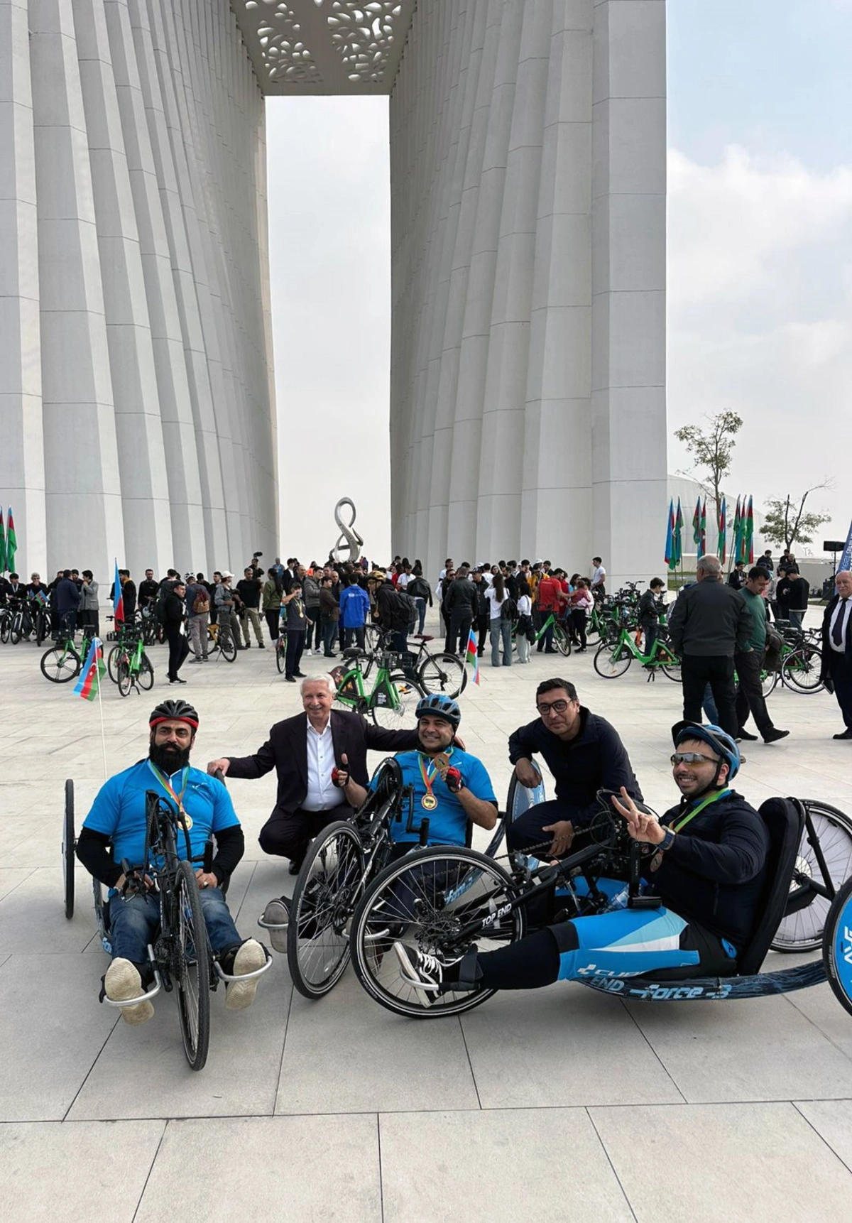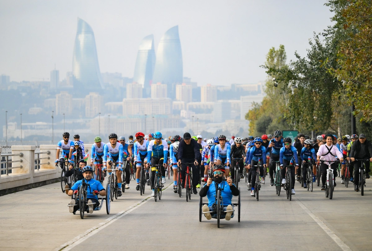 300-dən artıq peşəkar və həvəskar velosipedçi, o cümlədən paravelosipedçilər Dənizkənarı Bulvar ərazisindəki velosiped yolları ilə Zəfər Parkına doğru hərəkət ediblər.