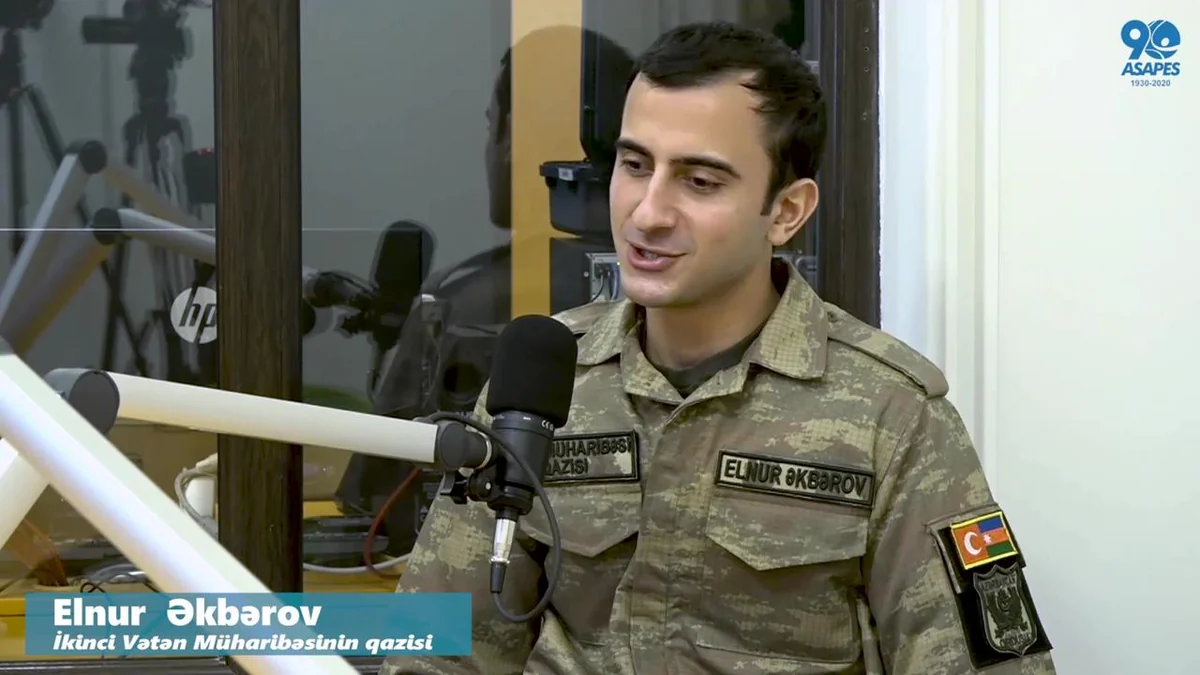 Layihənin ilk qonağı olan Akademiyanın 5-ci kurs tələbəsi Elnur Əkbərov çıxışında döyüşlərin başladığı ilk günlərdən ordu sıralarına qoşulduğunu, torpaqlarımızın düşmənin işğalından azad edilməsi uğrunda sonadək vuruşduqlarını, hər an xalqın dəstəyini və inamını hiss etdiklərini bildirib: “Xalqımızın Ordumuzun gücünə, cənab Ali Baş Komandanın verdiyi əmrə necə hörmət və inamla yanaşdığını döyüşlərə istiqamət aldığımızda anladıq. Döyüşlərdə iştirak etdiyimiz ilk gündən bizim yalnız bir məqsədimiz var idi, o da qalibiyyət idi. Biz 44 günlük müharibənin nəticəsində bütün dünyaya Azərbaycan Ordusunun nəyə qadir olduğunu döyüş meydanında sübut etdik”.