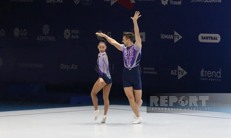 "Report"un Qərb bürosunun məlumatına görə, Mədinə Mustafayeva və Vladimir Dolmatov aerobika gimnastikası üzrə Avropa çempionatında çütlükdə çıxış edərək, 19.600 xalla çempion olublar.