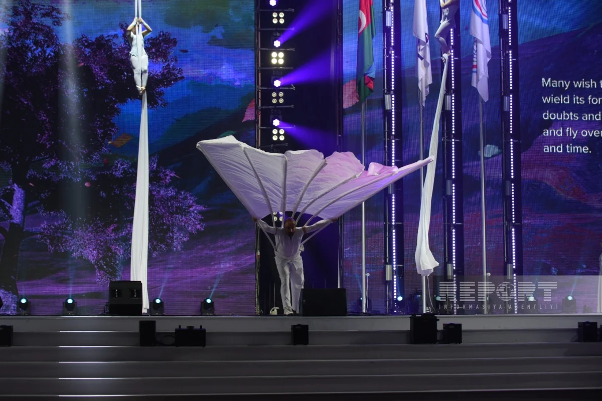 İdmançı, məşqçi və hakimlərin andiçməsindən sonra rəsmi hissə başa çatıb, bədii hissə başlayıb.
