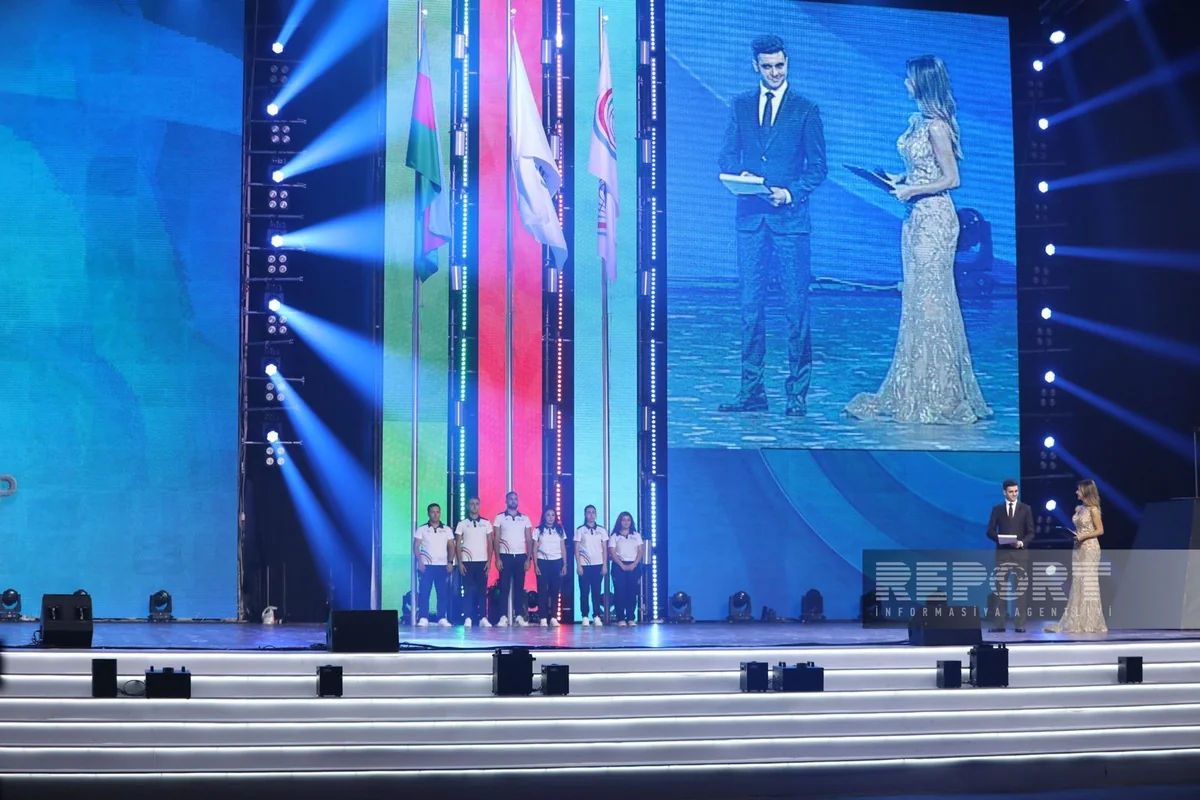 Bundan sonra Azərbaycan idmançıları Beynəlxalq Atıcılıq İdmanı Federasiyasının bayrağını səhnəyə gətiriblər.