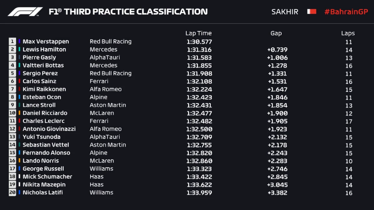 "Formula 1" üzrə Bəhreyn Qran-prisində üçüncü sınaq yürüşü başa çatıb.