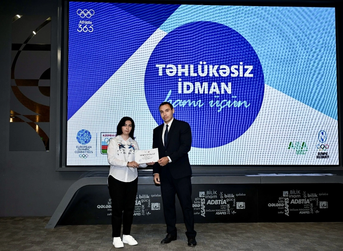 Azərbaycan İdman Akademiyasının akt zalında Milli Olimpiya Komitəsinin (MOK) həyata keçirdiyi "Təhlükəsiz idman - hamı üçün" mövzusunda kursların iştirakçılarına sertifikatlar təqdim edilib.