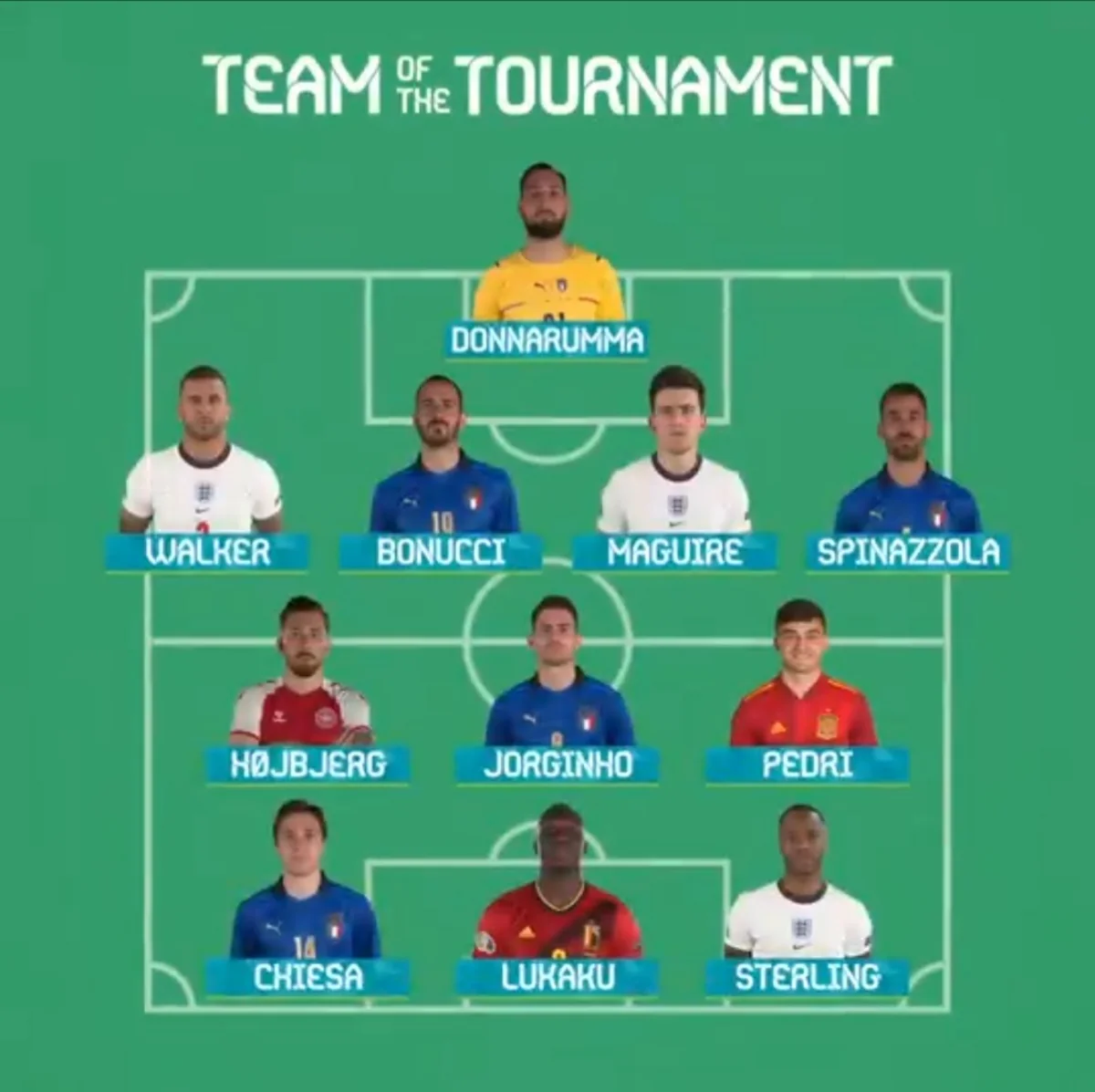 "Report"un məlumatına görə, ən yaxşı "11-lik"də Avropa çempionu olan İtaliya millisindən 5 futbolçu yer alıb. Finalda uduzan İngiltərə yığması rəmzi kollektivdə 3 oyunçu ilə təmsil olunub.