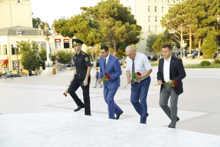 Ardından Abşeron rayon Polis İdarəsinin əməkdaşları, AİJF İdarə Heyətinin və jurnalistlərdən ibarət komandanın üzvləri Xırdalan şəhərində ümummilli lider Heydər Əliyevin abidəsini ziyarət edərək, abidə üzərinə tər qızılgüllər düzüblər.