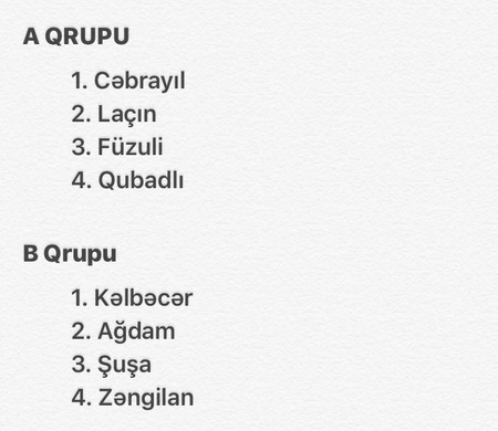 A qrupu: "Cəbrayıl", "Laçın" "Füzuli", "Qubadlı"