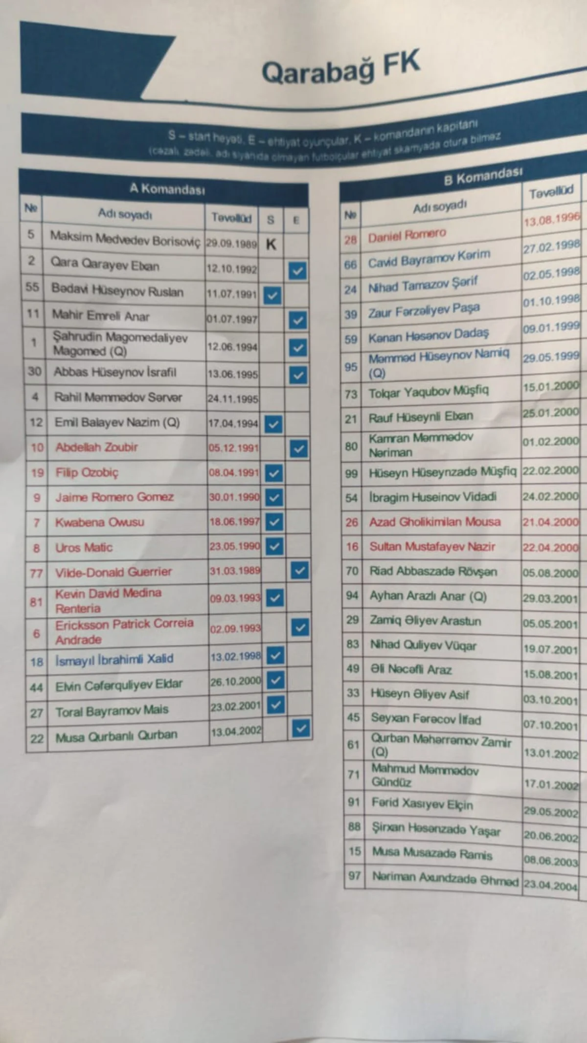 "Report"un məlumatına görə, Peşəkar Futbol Liqasının (PFL) rəsmi saytında start heyətdə Xayme Romeronun adı göstərilib, lakin onun yerinə meydana Patrik Andrade daxil olub.