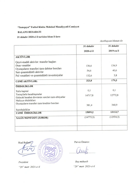 Bu il yanvarın 1-nə “Sumqayıt Futbol Klubu”nun aktivləri 324 min manat olub ki, bu da 1 il əvvələ nisbətən 81% çoxdur.